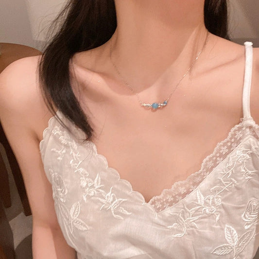 Blue Dopamine Titanium Steel Girl Necklace Clavicle Chain-CU