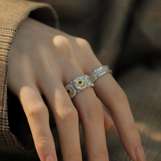 Daisy Ring Sterling Silver Retro Luxury Open Ring-CU
